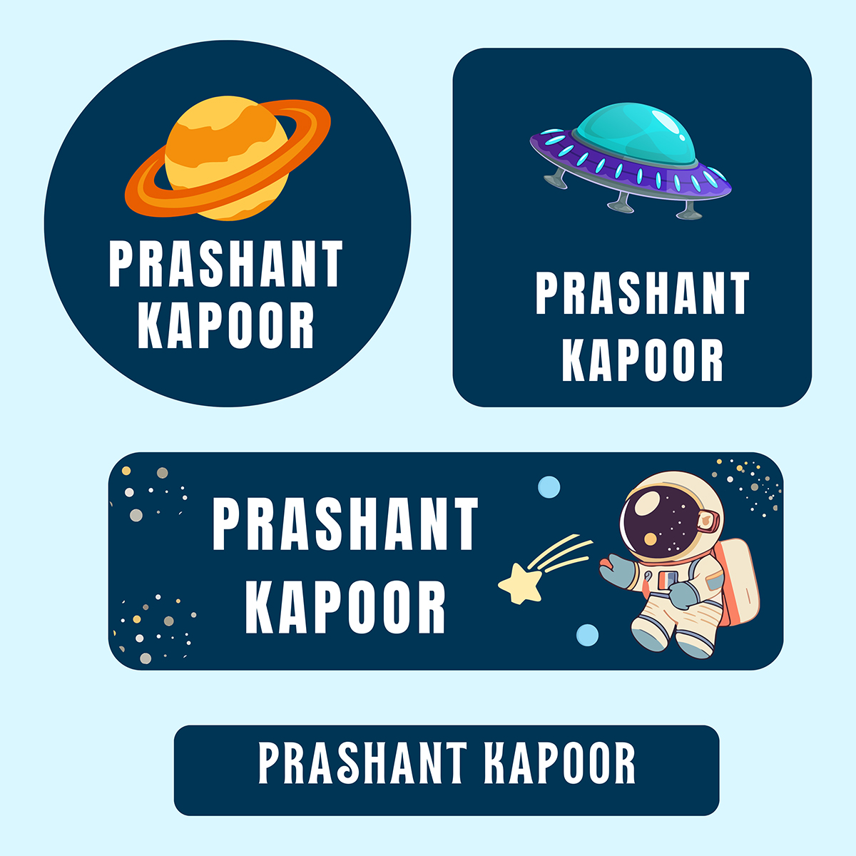 Astronaut Space waterproof kids Name labels Stickers (Pack of 50 pc)