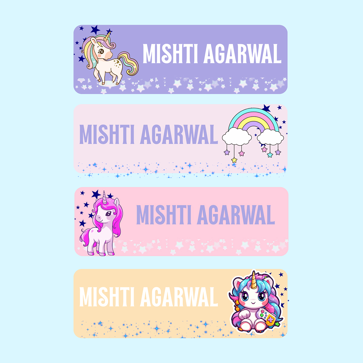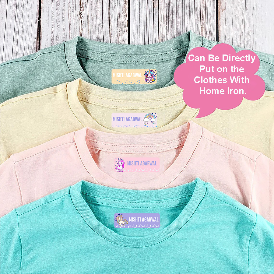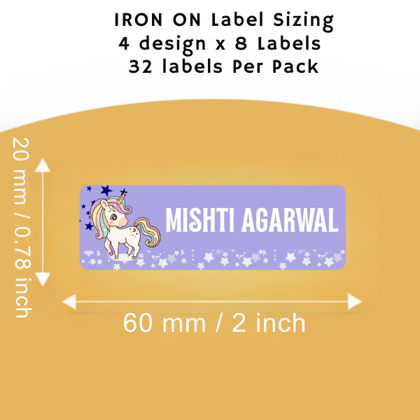 Unicorn iron on stickers for Cloths | Name labels for Cloths (Pack of 32pc – 8pc each design)